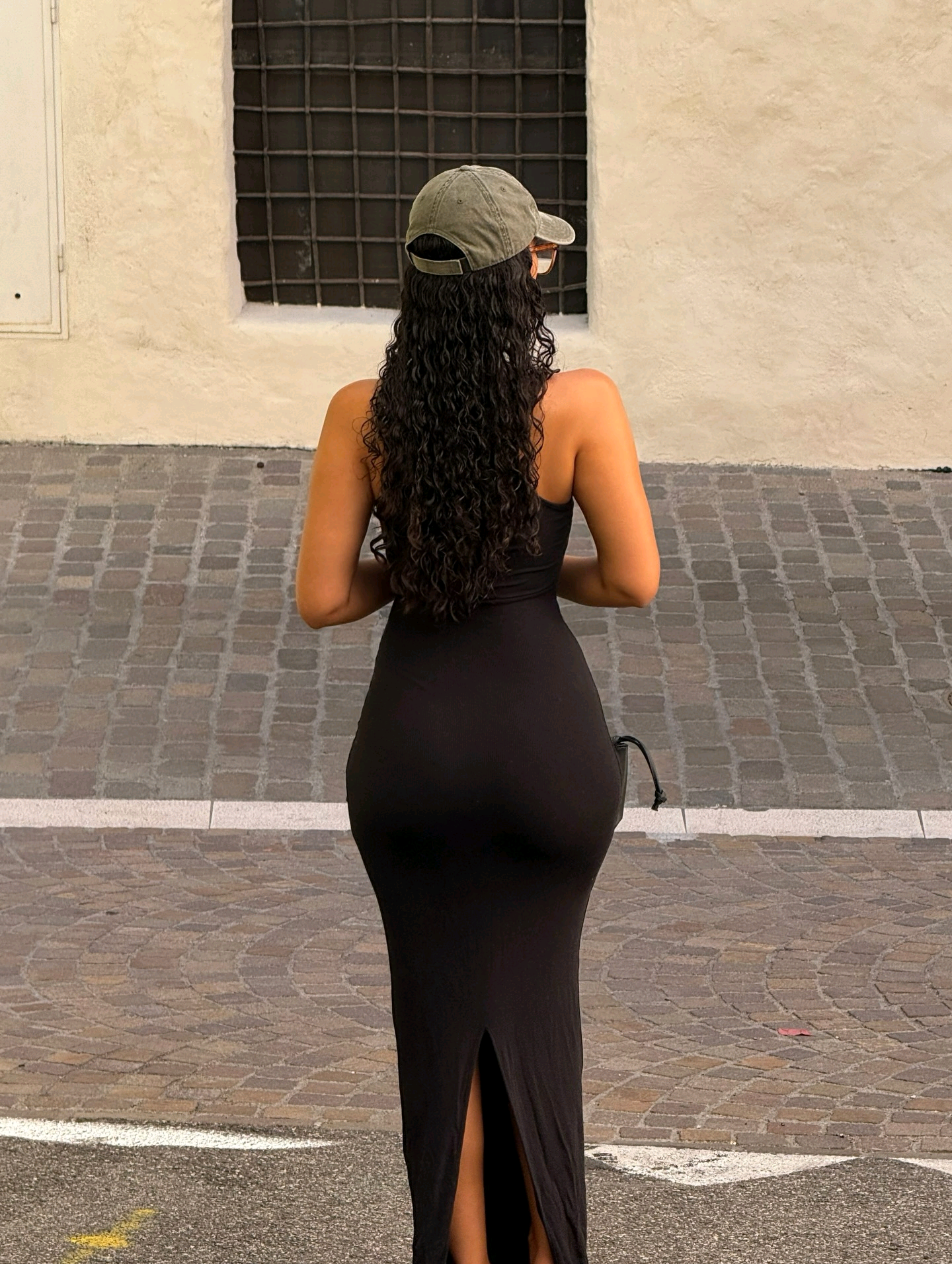 Effortlessly sleek and endlessly versatile, this black maxi dress is your go-to for laid-back luxury. Designed with a figure-hugging fit and a classic sleeveless cut, it blends comfort with a clean, minimal aesthetic.